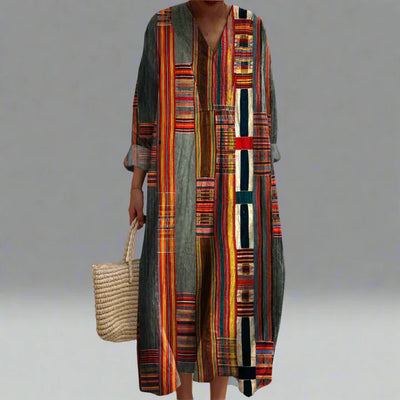 Marianne – Geometric Striped Boho Maxi Dress